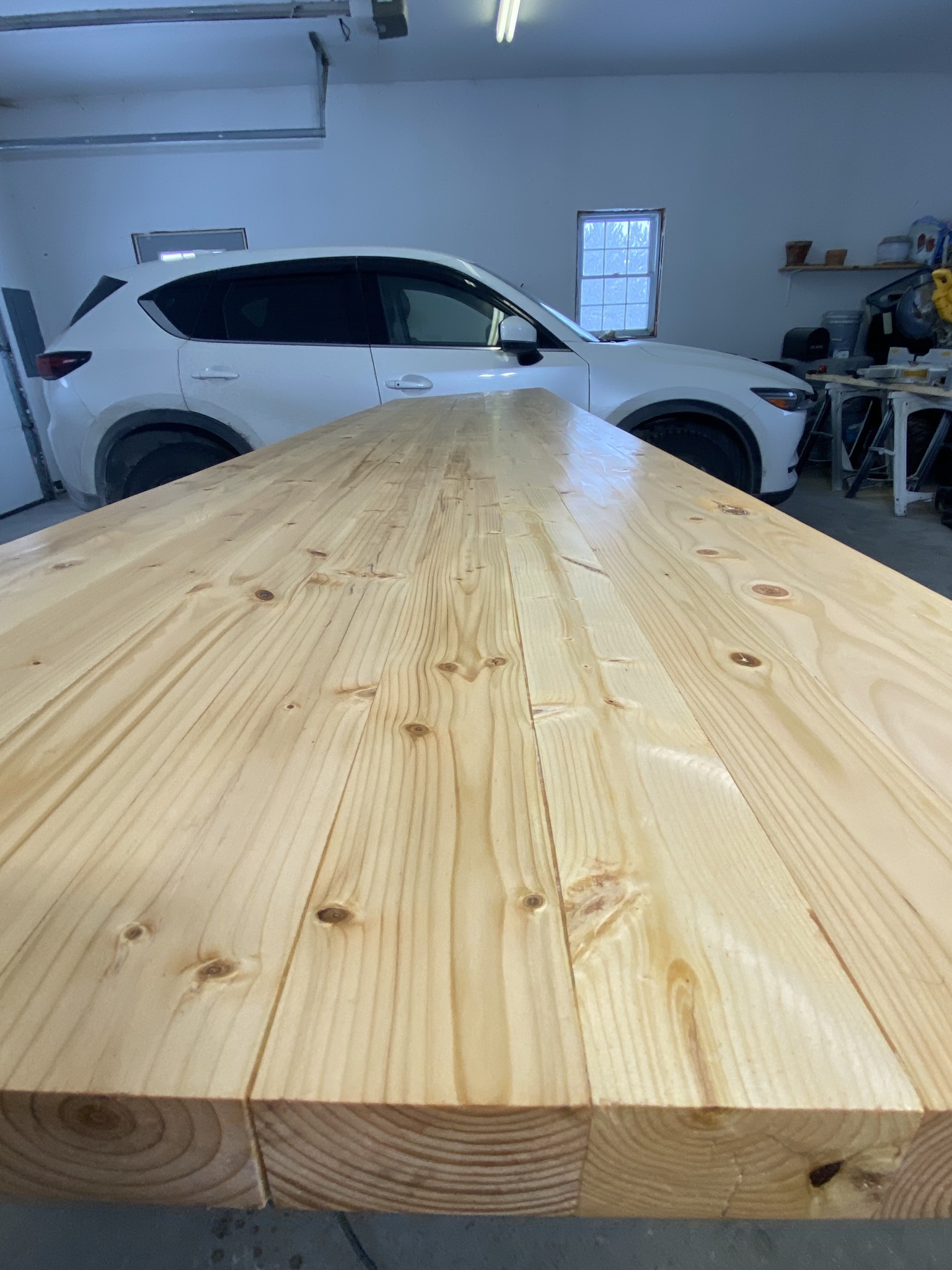 Step 5- For the seat portion of the booth we got “edge glued” pieces of wood they were great quality, pre-sanded and glued together boards- obviously you have to look closely and make sure not too warped but I like this option from Lowe’s a lot.